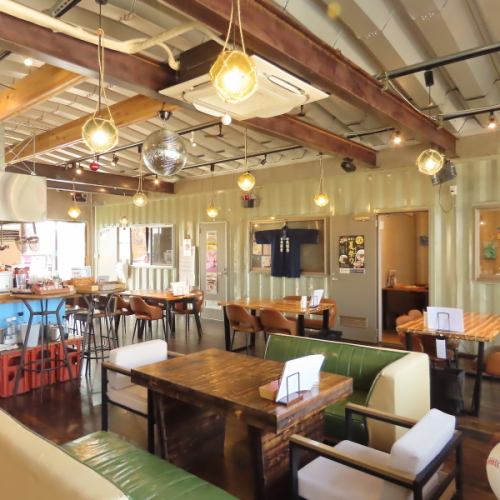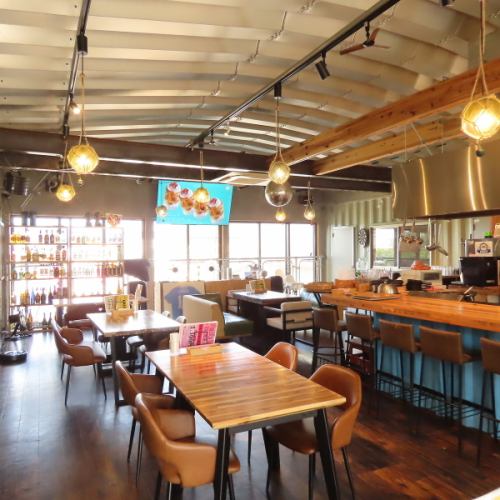 【◆洋風なおしゃれなお店♪◆】日本の風情あふれる田舎の雰囲気の中、周りとは一味違ったおしゃれな空間をご提供!カリフォルニアスタイルで洋風&アメリカンな印象で、女子会やご宴会など、様々なシーンで楽しみやすい雰囲気のお店となっております。カウンター席やテーブル席、ソファー席など、席タイプも様々♪